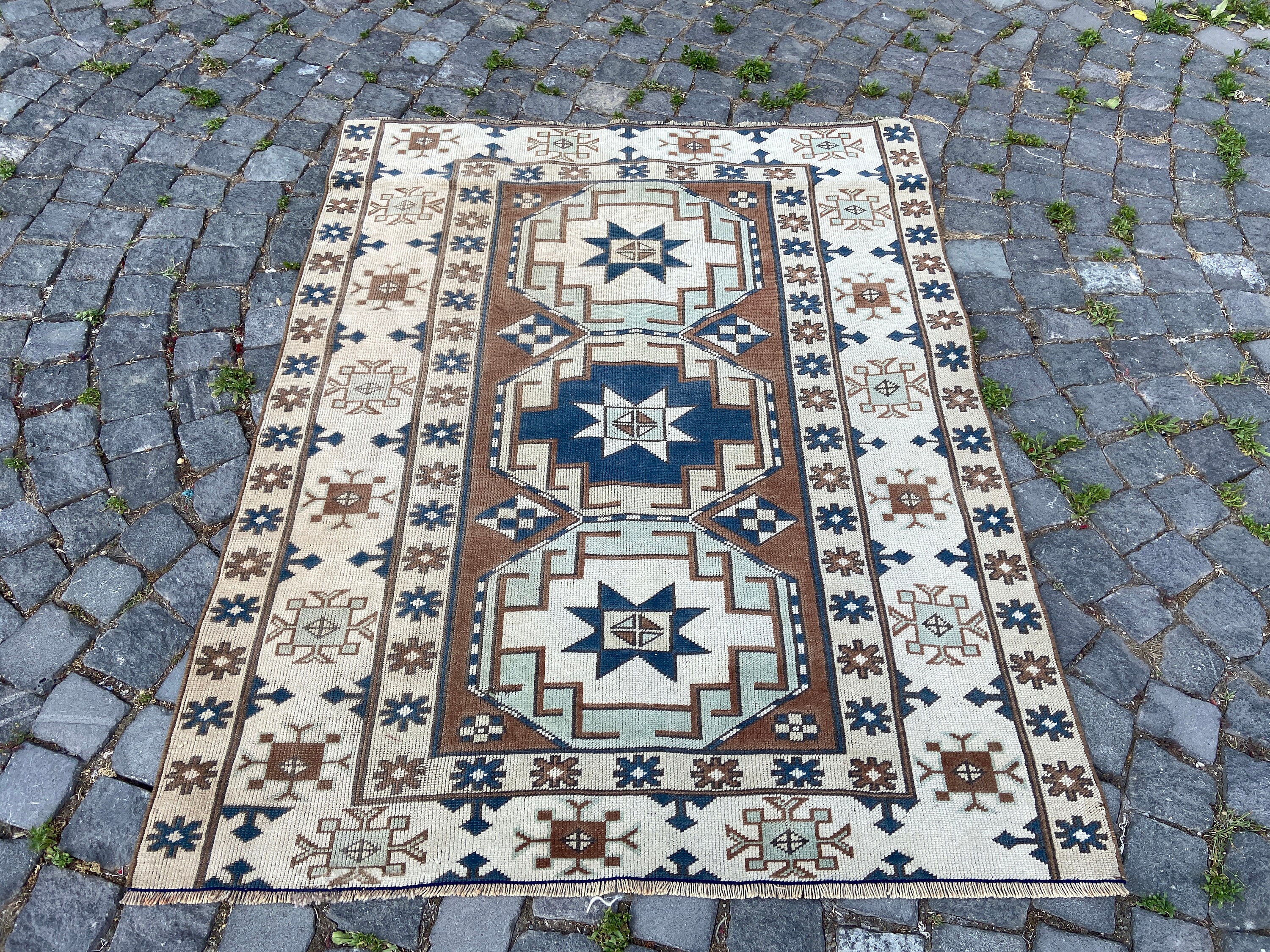 4 x 5 rug Turkish vintage rug, Brown handmade area rug, Bohemian wool rug, Turkish kilim, Kitchen rug, Entryway rug
