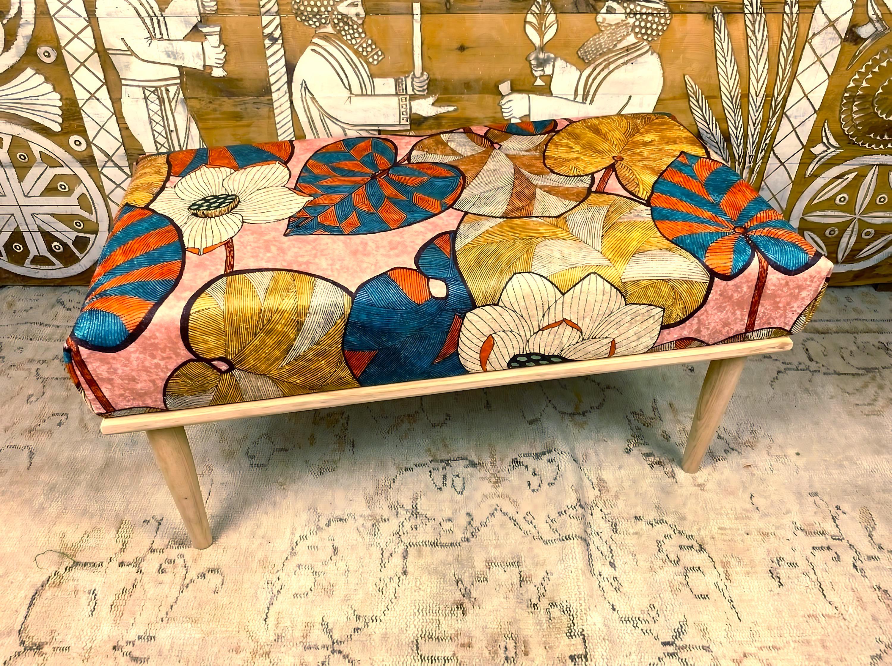 This unique handmade bench is designed to add warmth and aesthetic charm to your home decor. Inspired by Printed rug, it is crafted using high-qualitya hornbeam and beech wood, ensuring a stylish and durable addition to your living spaces.