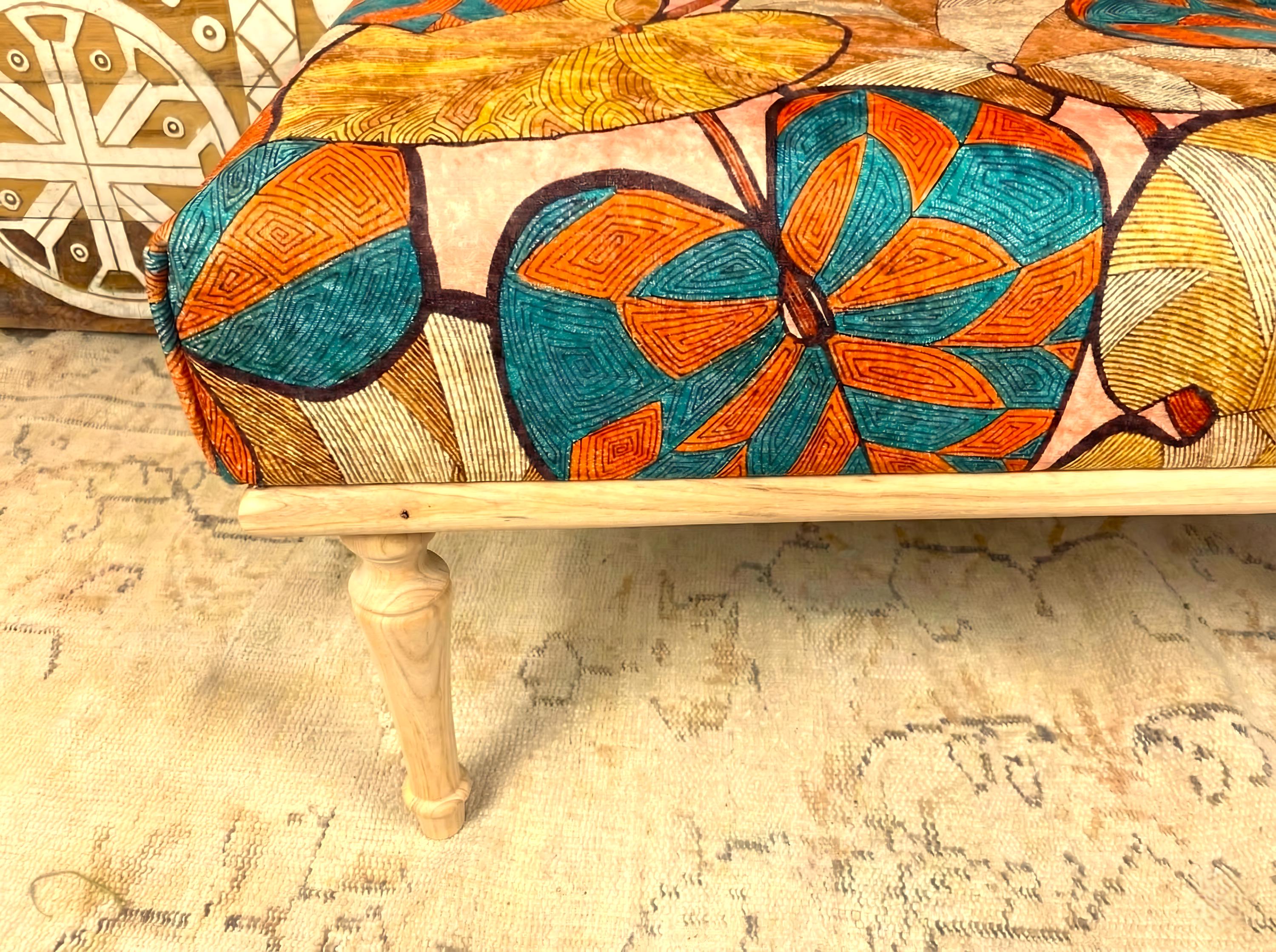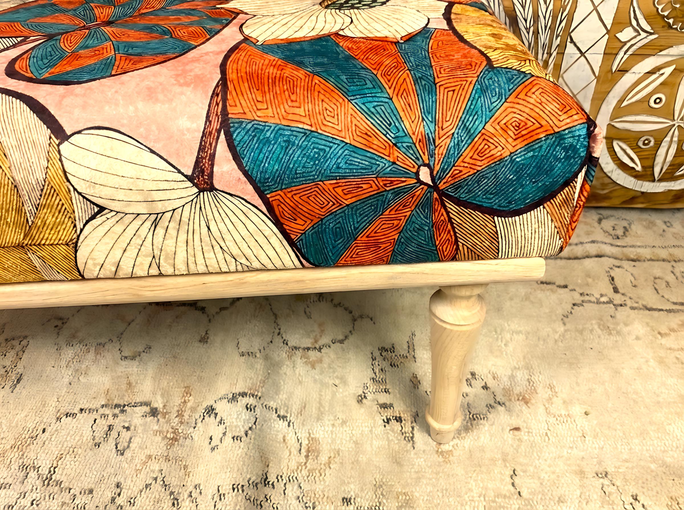 This unique handmade bench is designed to add warmth and aesthetic charm to your home decor. Inspired by Printed rug, it is crafted using high-qualitya hornbeam and beech wood, ensuring a stylish and durable addition to your living spaces.