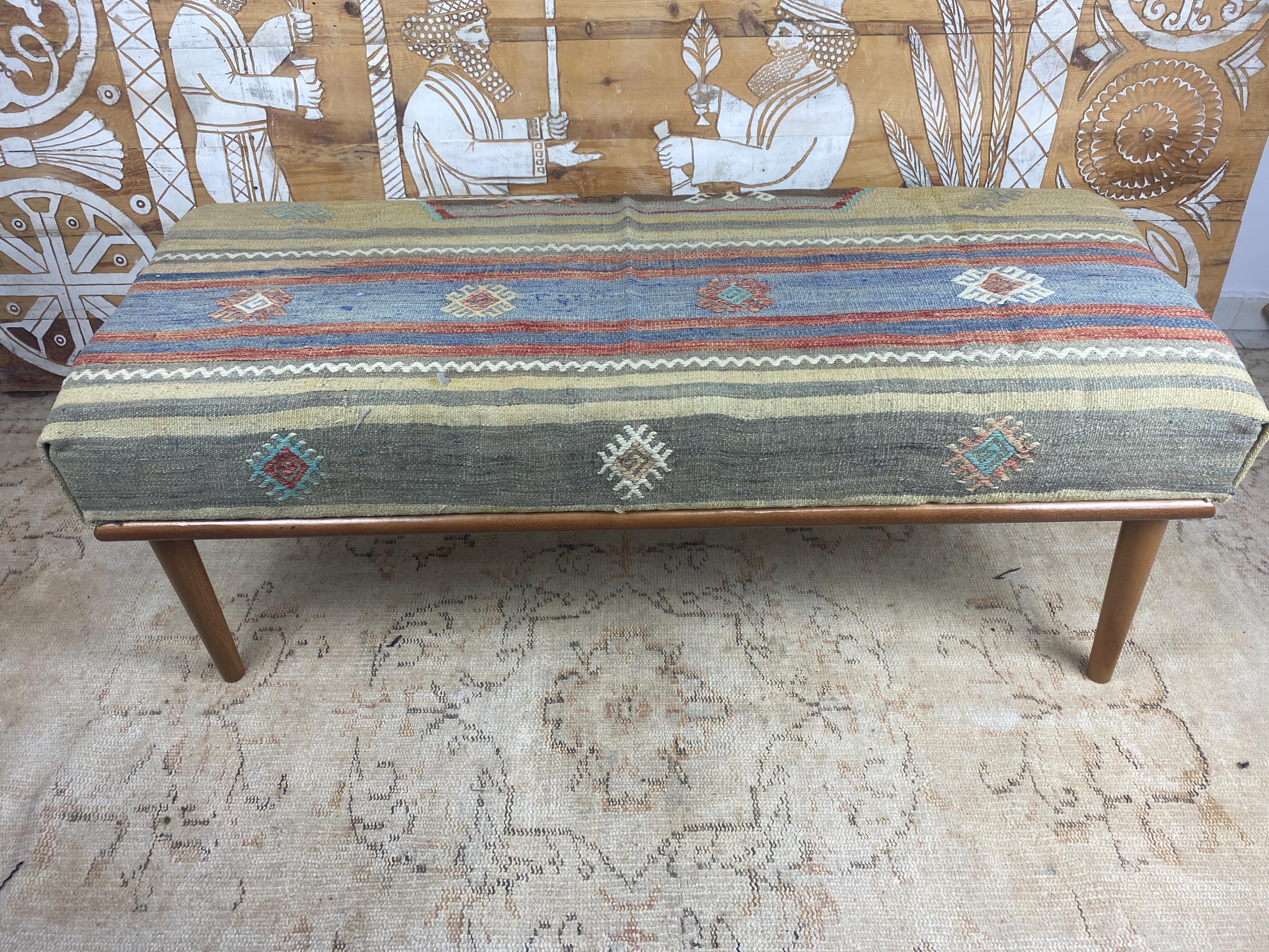 This unique handmade bench is designed to add warmth and aesthetic charm to your home decor. Inspired by handmade rug, it is crafted using high-quality hornbeam and beech wood, ensuring a stylish and durable addition to your living spaces.