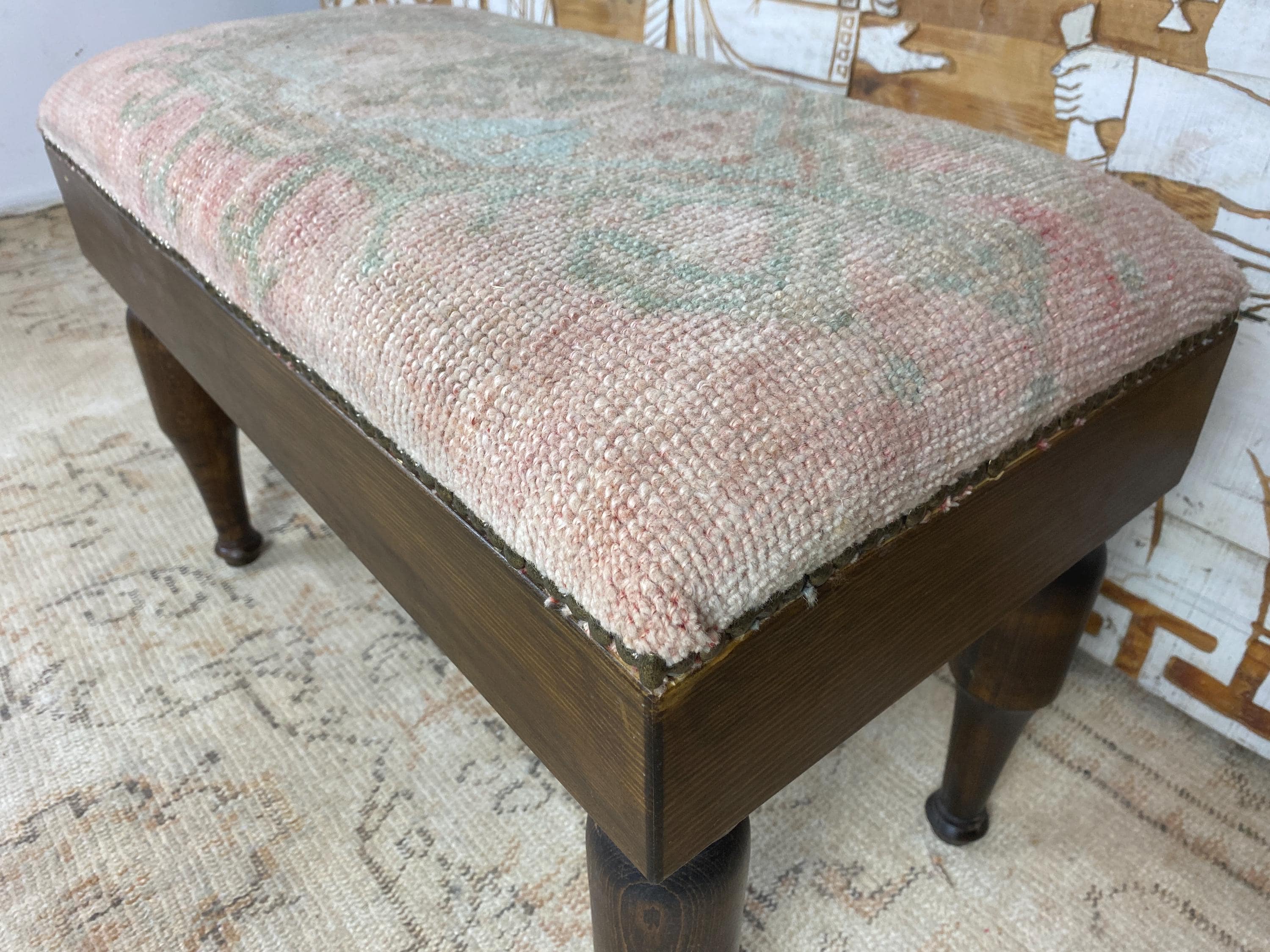 Please Note: Since the rug is hand-woven, the pattern on this specific bench is one-of-a-kind. When you buy it, you own the only one like it in the world! 🌟