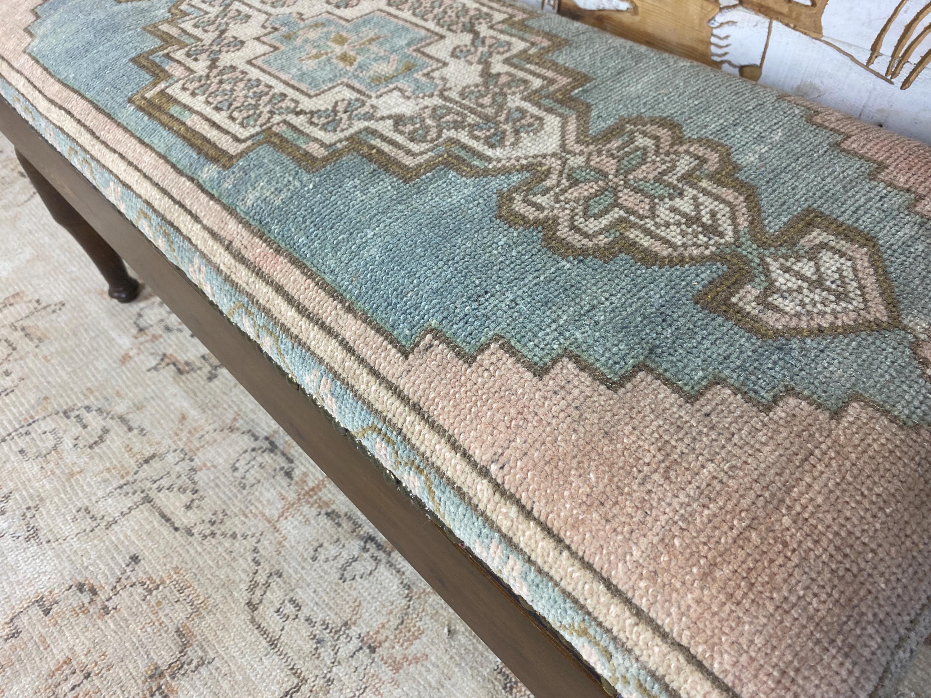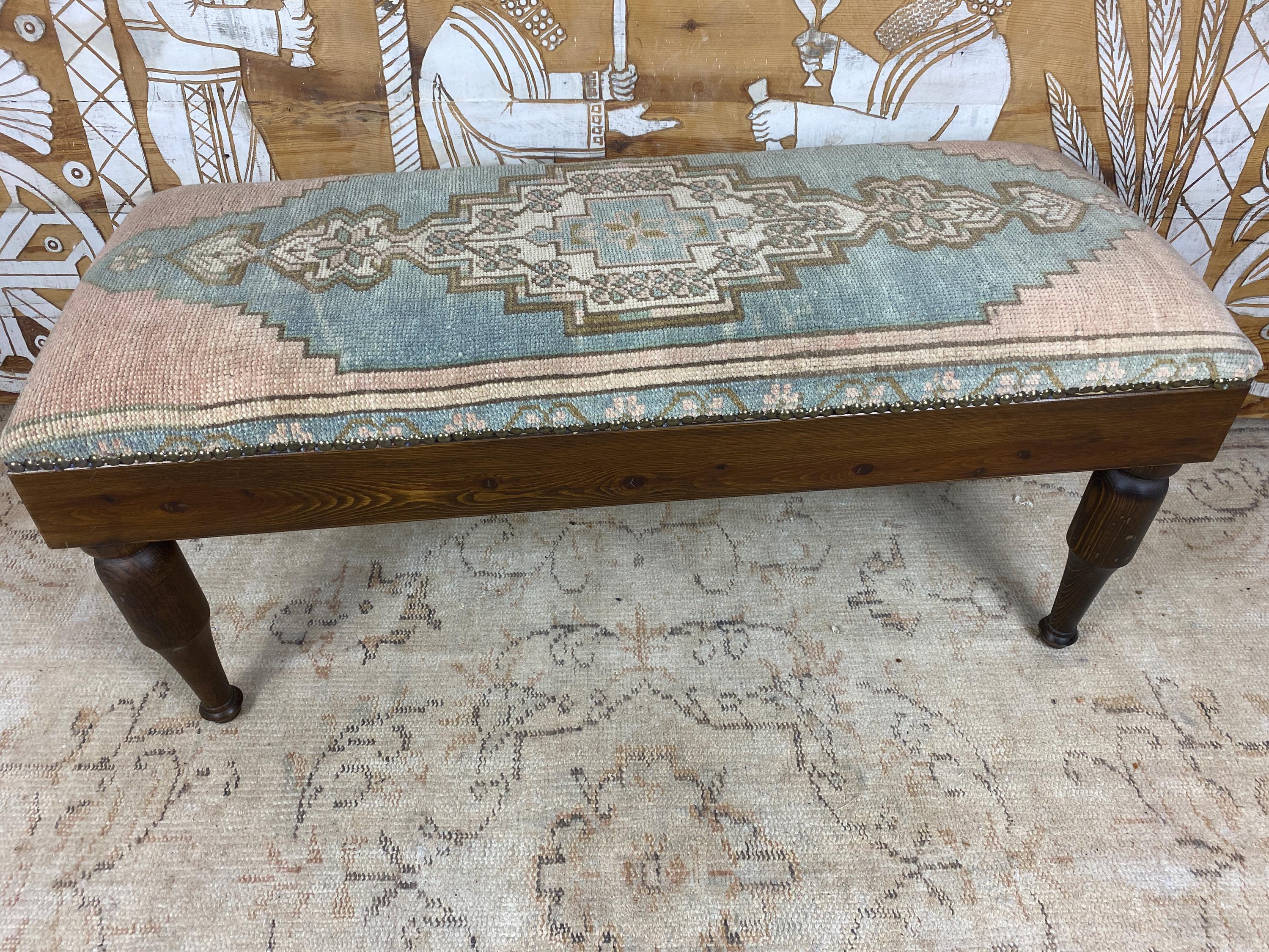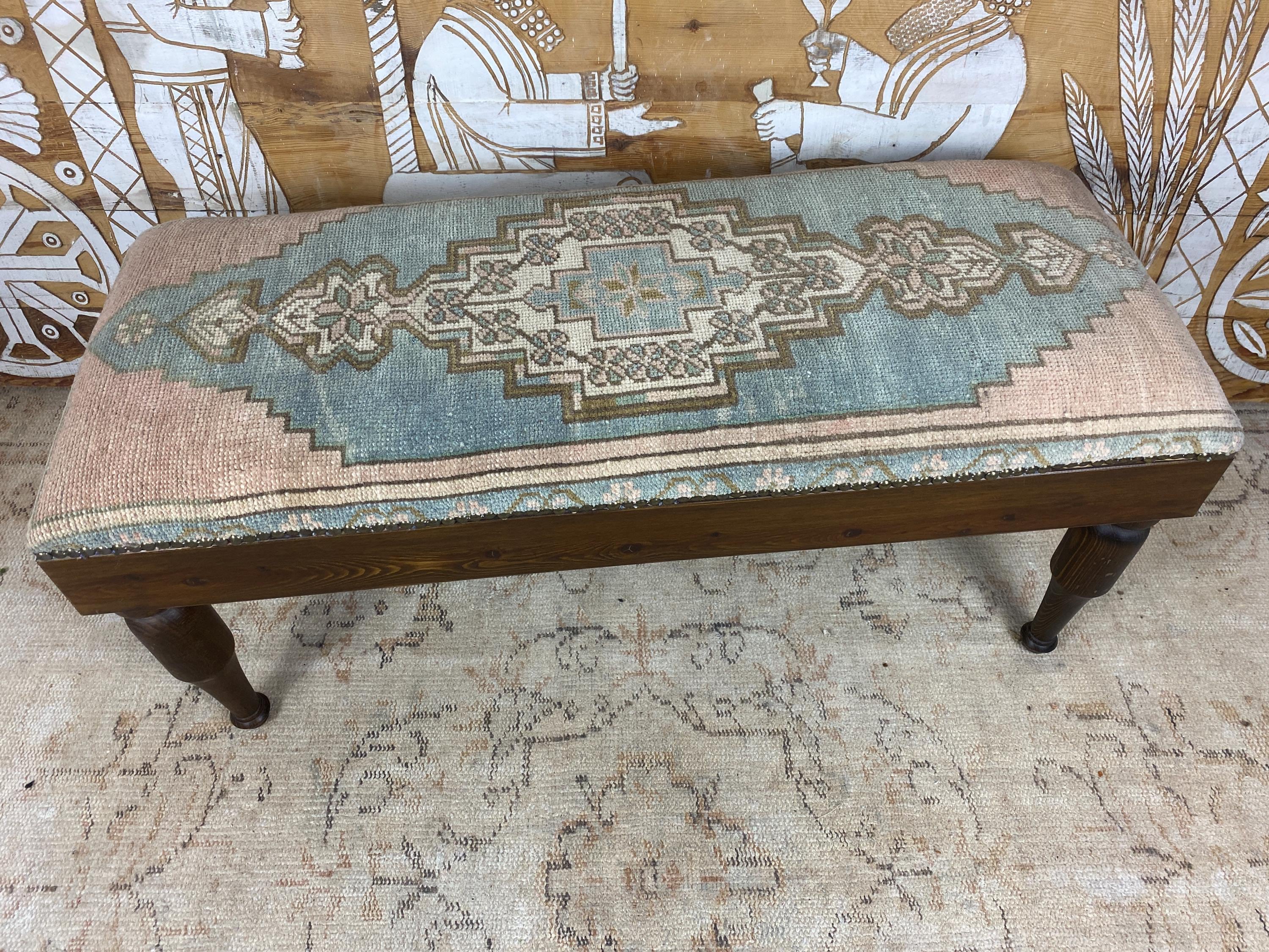 Please Note: Since the rug is hand-woven, the pattern on this specific bench is one-of-a-kind. When you buy it, you own the only one like it in the world! 🌟
