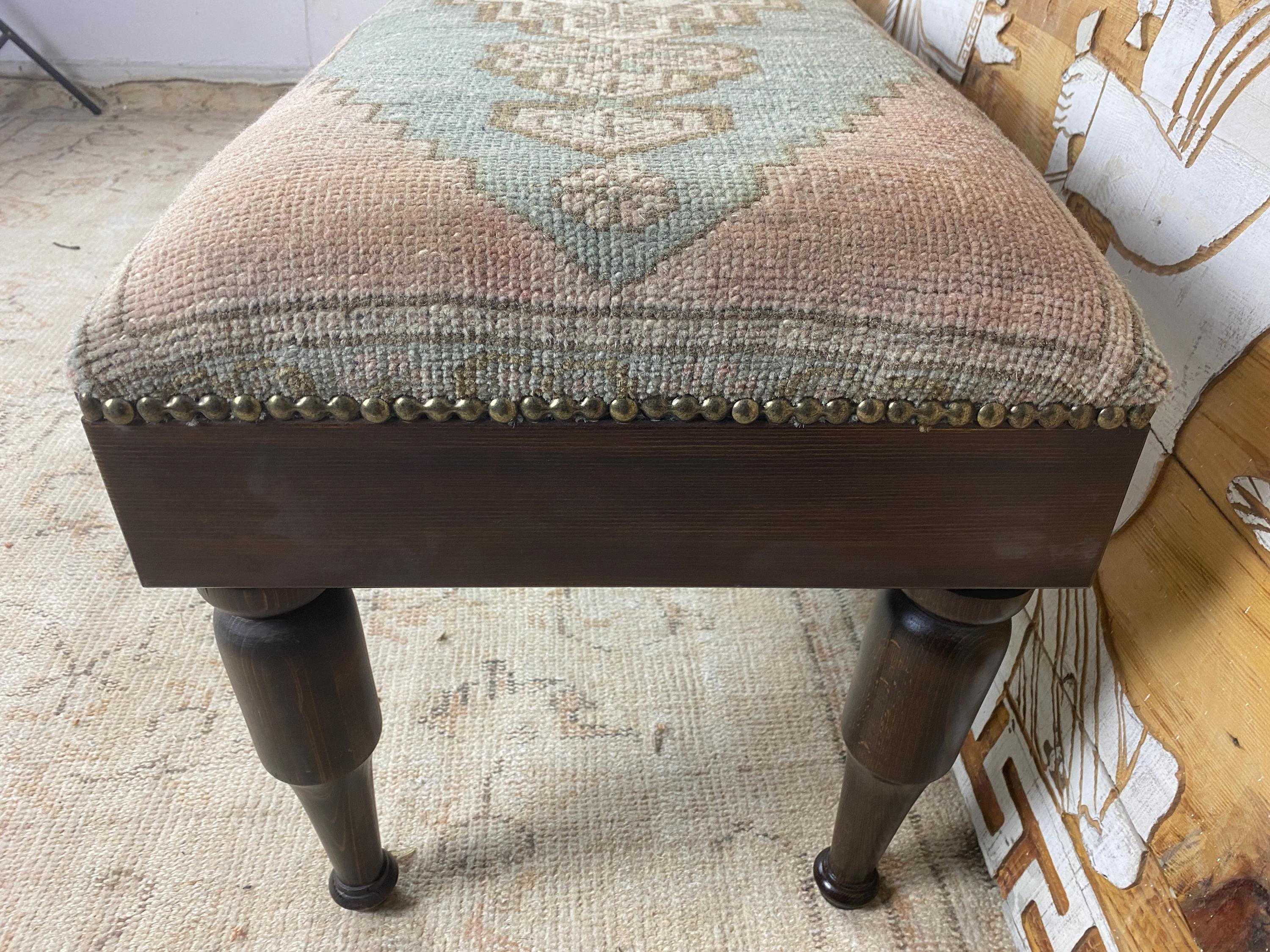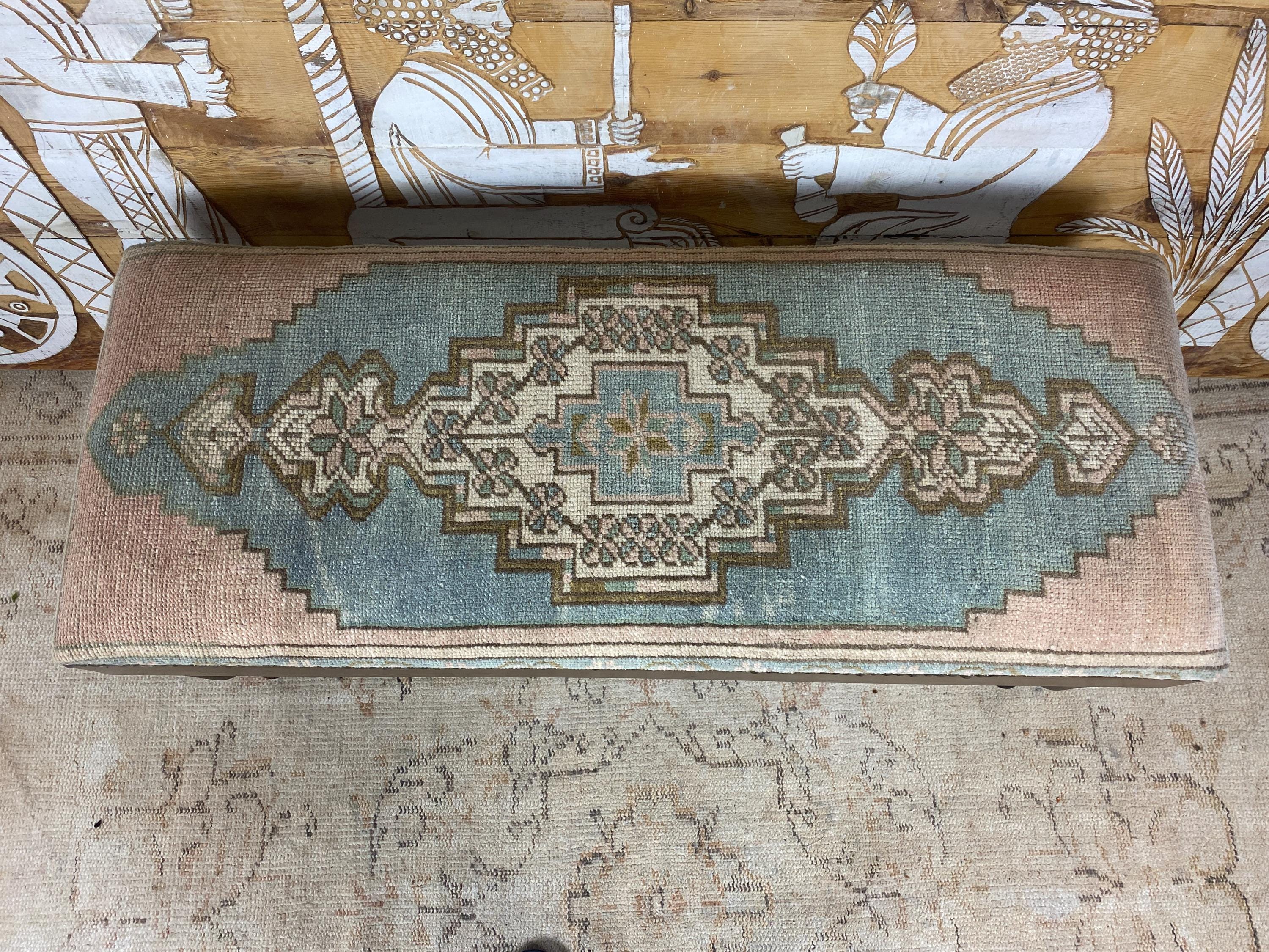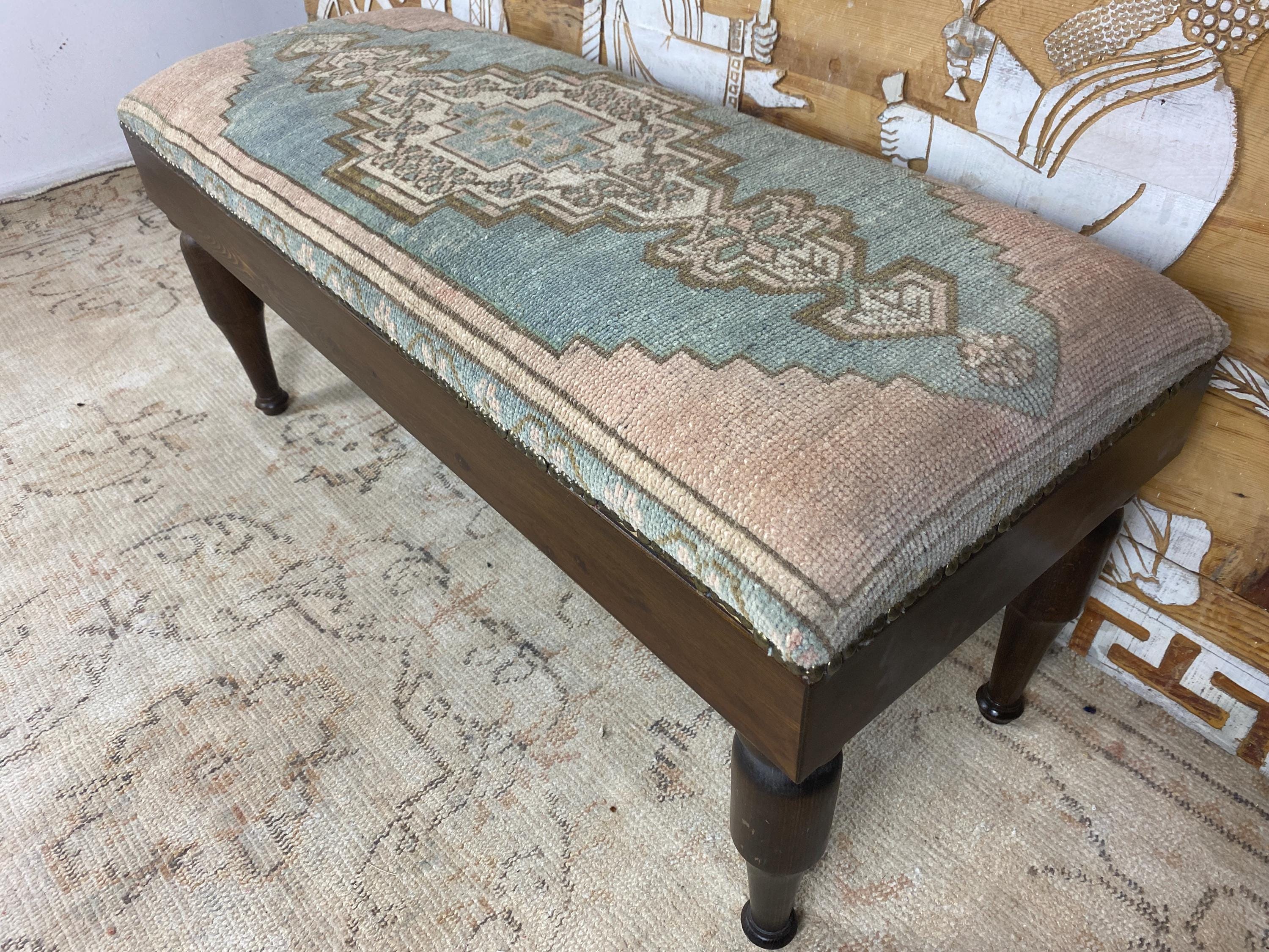 Please Note: Since the rug is hand-woven, the pattern on this specific bench is one-of-a-kind. When you buy it, you own the only one like it in the world! 🌟