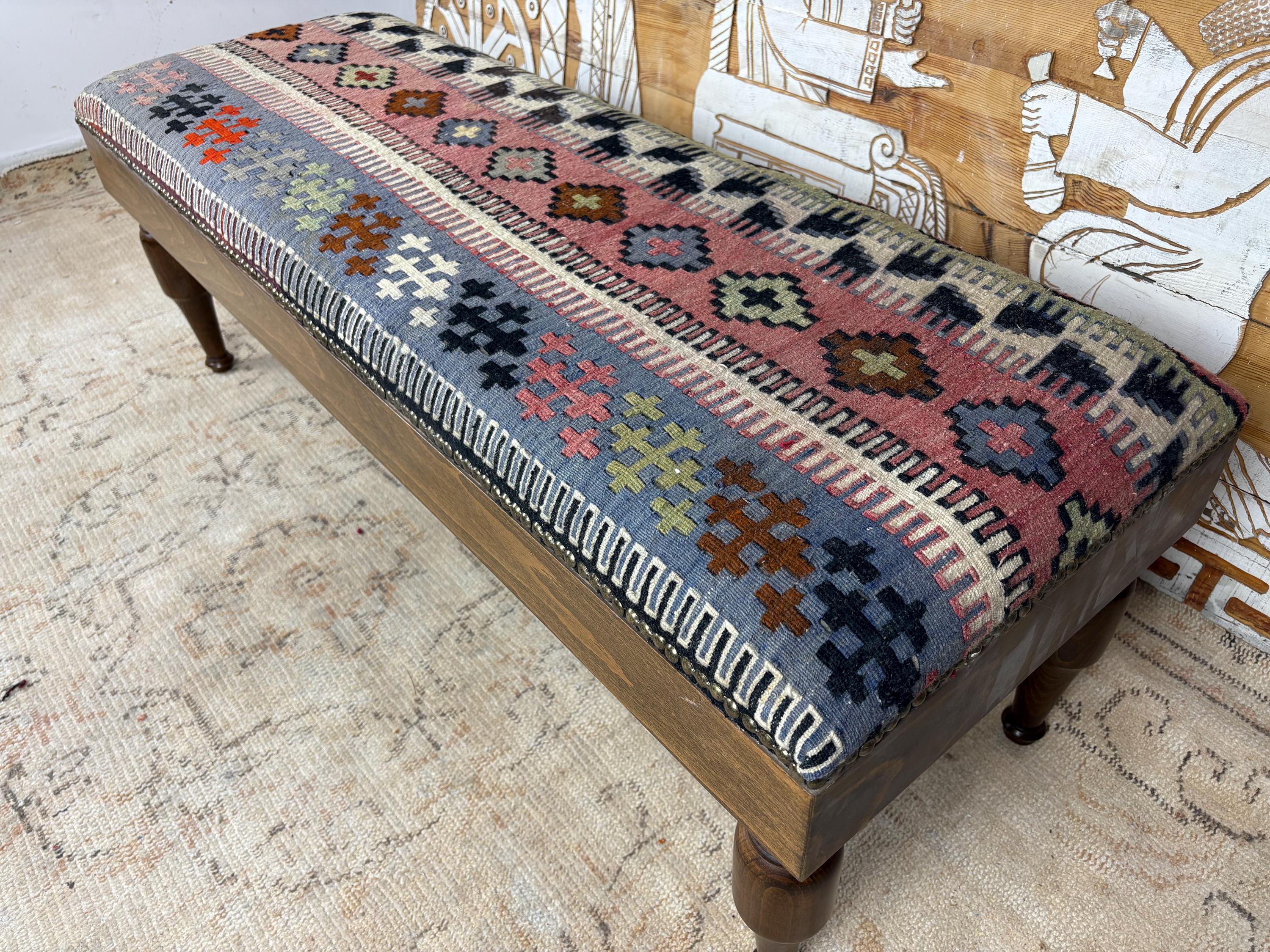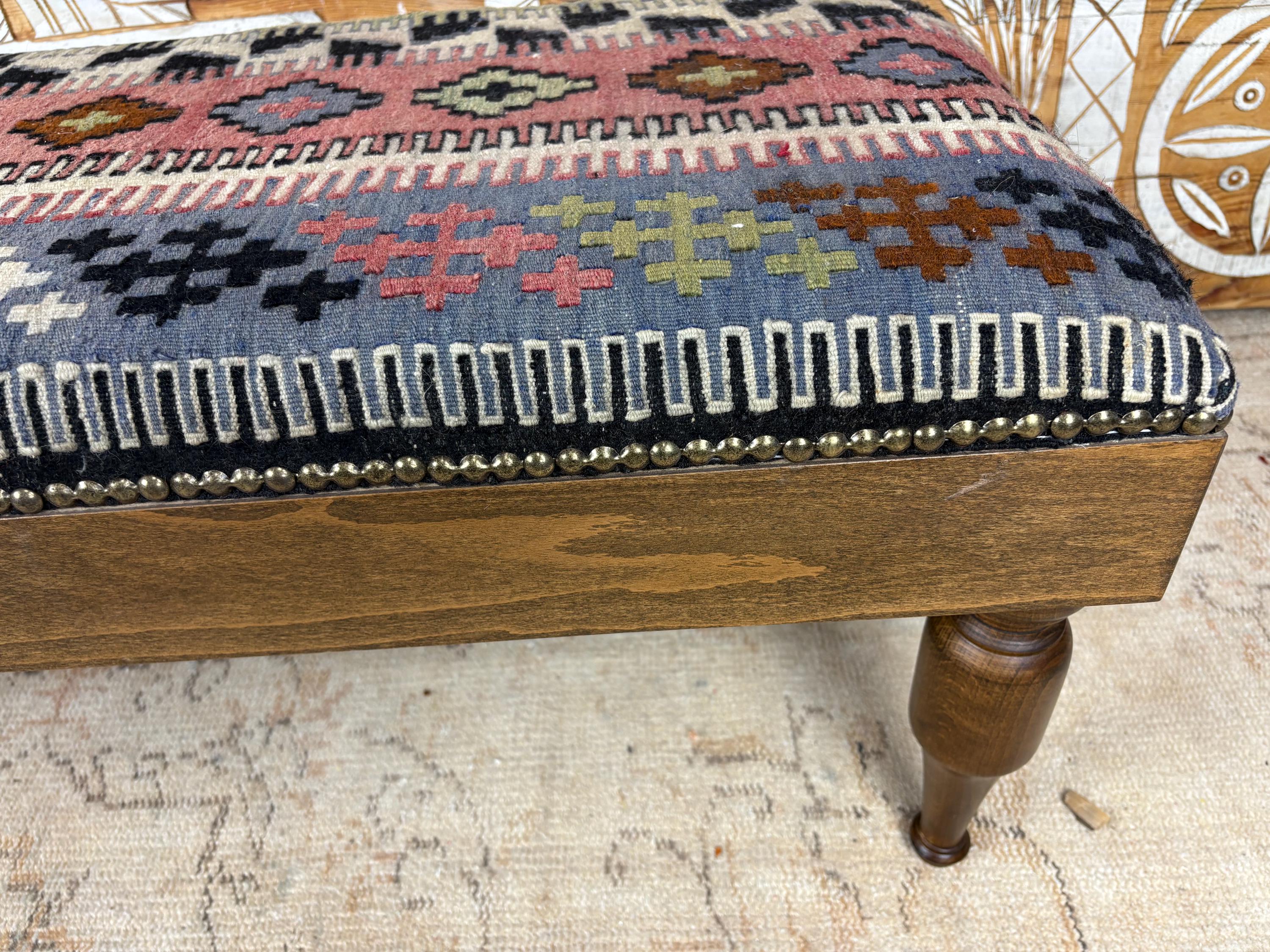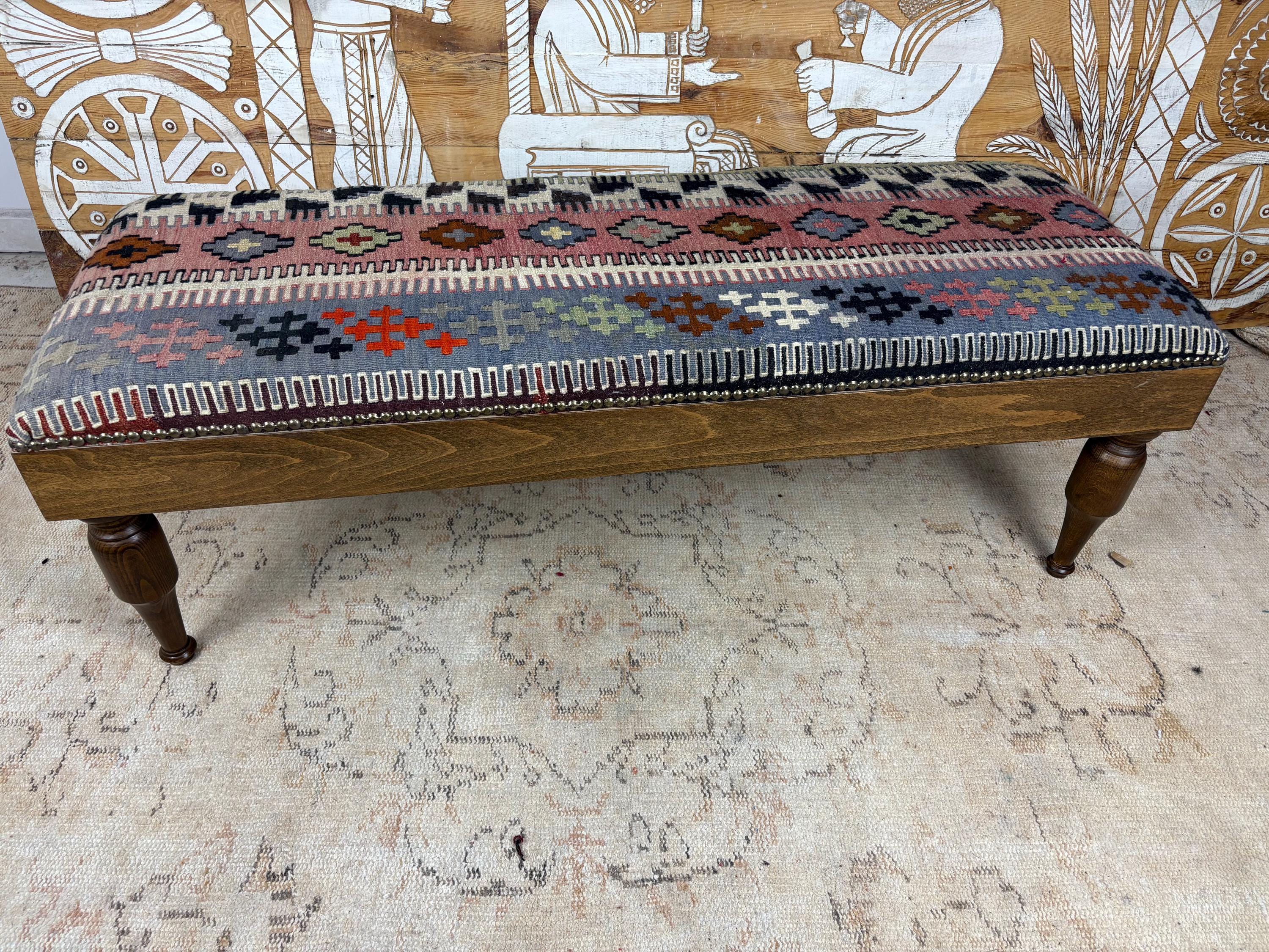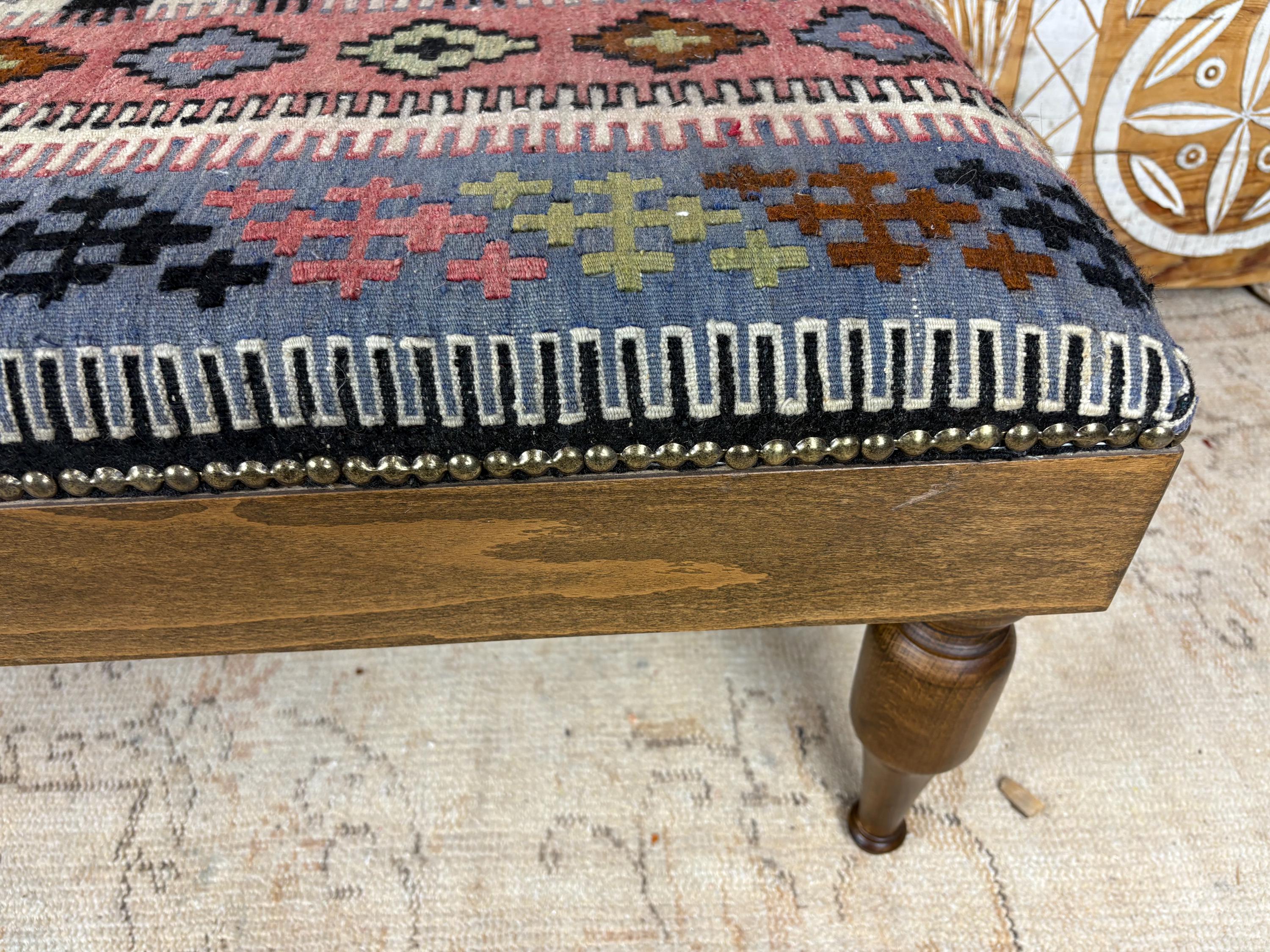 Please Note: Since the rug is hand-woven, the pattern on this specific bench is one-of-a-kind. When you buy it, you own the only one like it in the world! 🌟