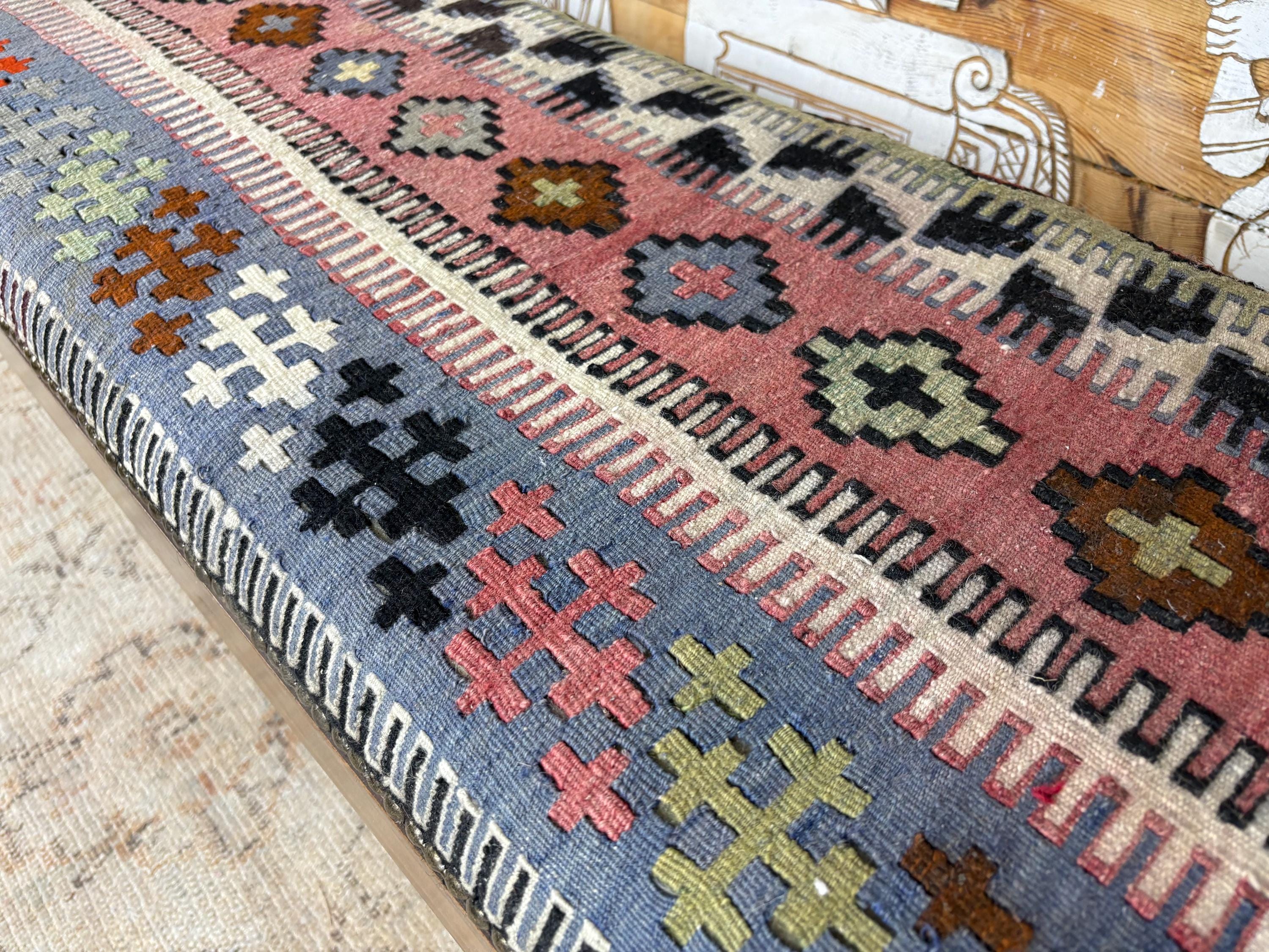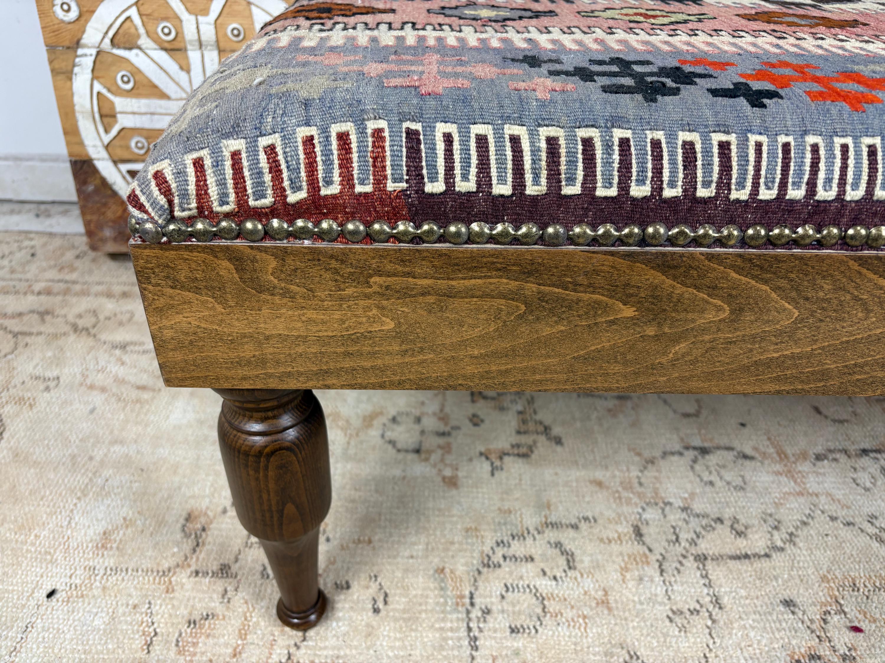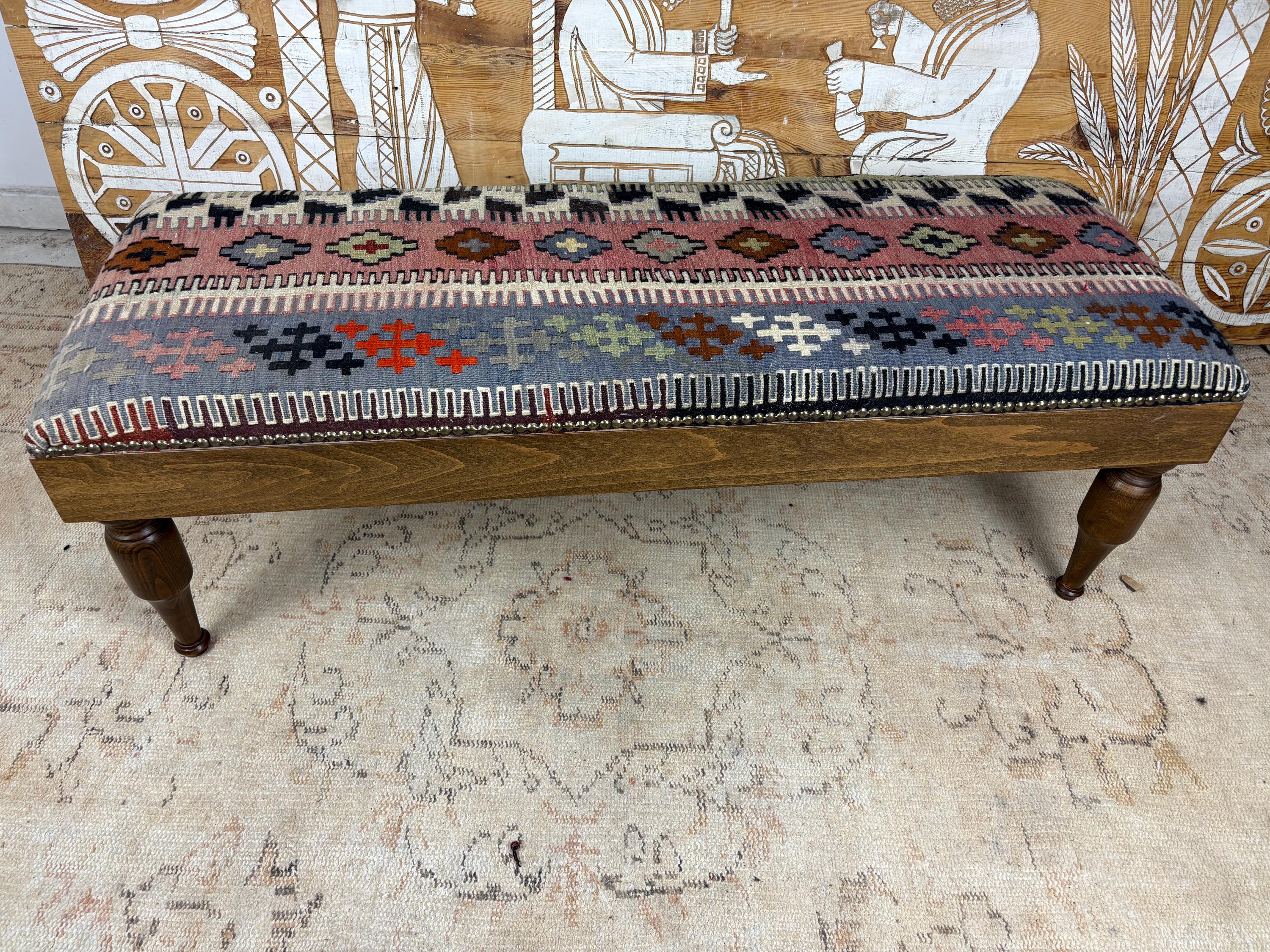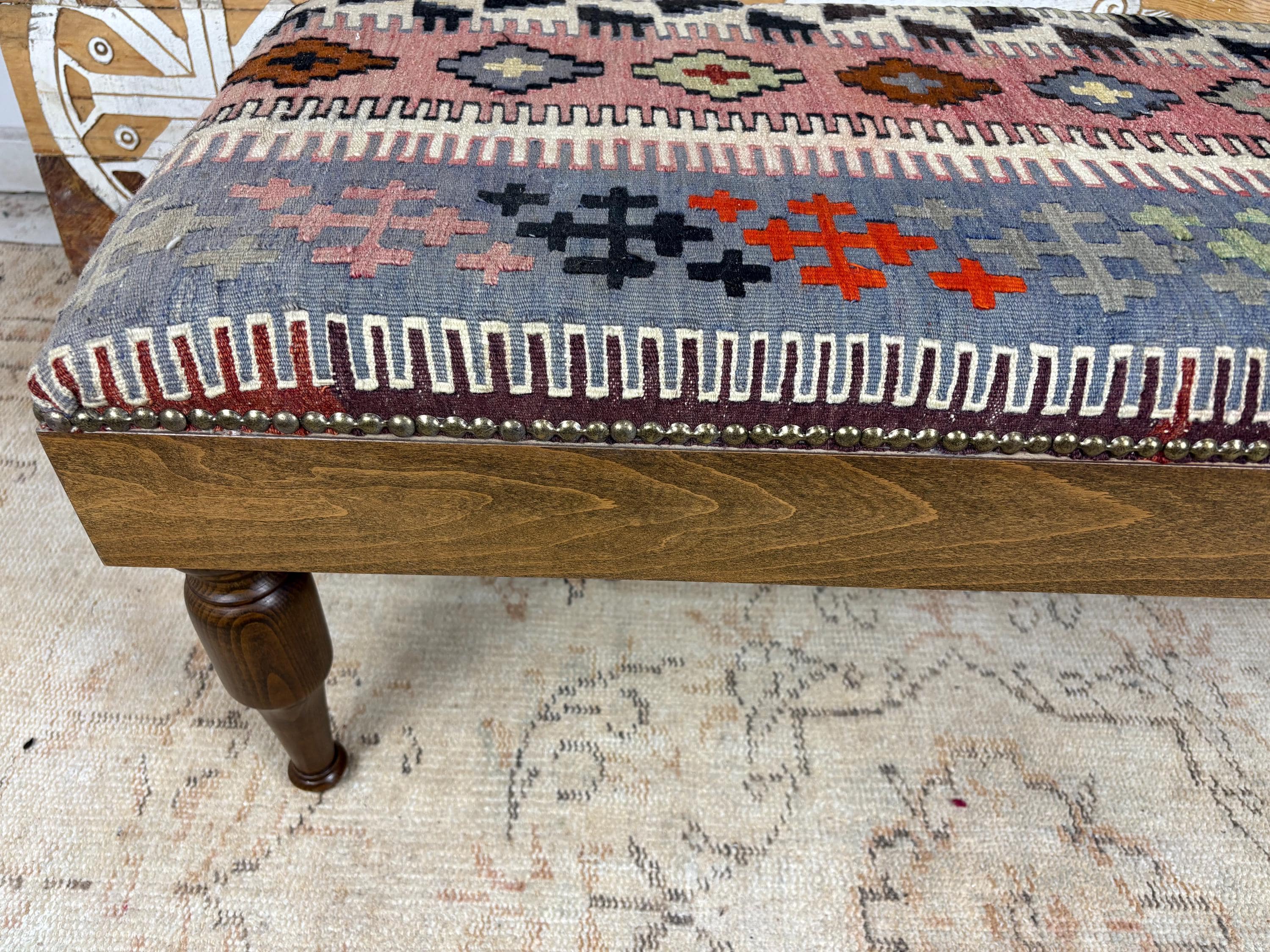 Please Note: Since the rug is hand-woven, the pattern on this specific bench is one-of-a-kind. When you buy it, you own the only one like it in the world! 🌟