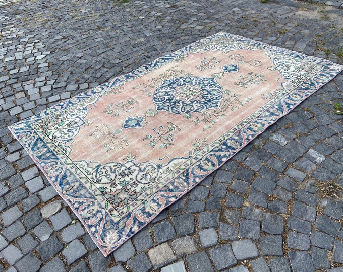 Blue Large rug, Oushak rug, Turkish rug, Vintage rug, Wool rug, Handmade rug, Carpet, Kilim, Home decor | 163 x 285 cm = 5,3 x 9,3 ft